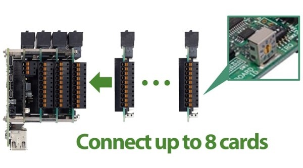 FA control and measurement control systems require large numbers of signal inputs and outputs. Where previously only a single card could be connected, Contec has expanded the HAT (Hardware Attached on Top) specifications to allow multilevel connections. Our original Board ID system allows a maximum of 8 cards to be connected in a stack for use with systems that require multiple signal inputs and outputs.