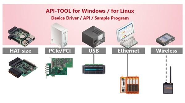 Do you want to replace part of a PC-based system with Raspberry Pi? Do you want to scale-up a Raspberry Pi-based system to a PC-base? Contec makes these changes possible with a minimum of program changes. Integrated driver software minimizes the effects of hardware differences, ensuring high compatibility on the API level.