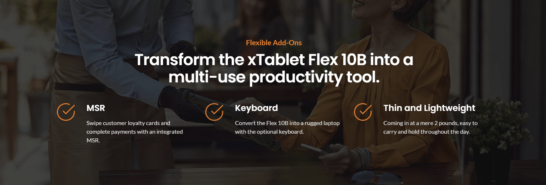 Ultra-thin and lightweight, ideal for mobile ordering and line busting applications.