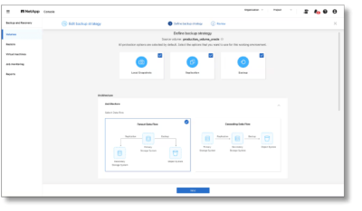 The new release has been redesigned to provide data protection for all your workloads. This includes support for volumes, databases, VMs and Kubernetes. Now, from a unified control plane, you can easily define a 3-2-1 data protection strategy for all your ONTAP data.