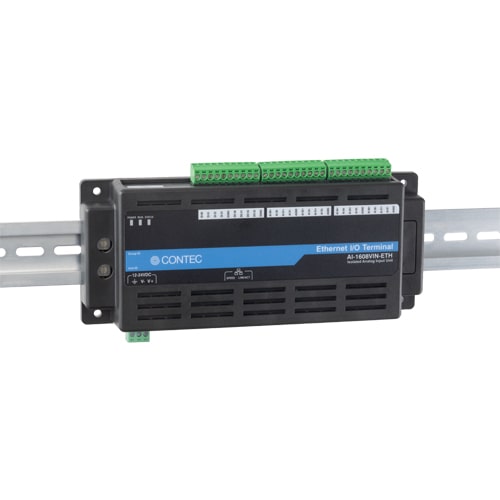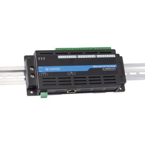 The product is an Ethernet-compatible unit with analog input function. Compact design, (188.0(W)×78.0(D)×30.5(H)mm), features flexibility in installation. The product can be set on the floor, wall, and inside the console or equipment with the DIN rail. Windows/Linux device driver is supported with the product.8 channels of 16-bit analog input, and digital input and output (4 channels respectively) are equipped, and these circuits are isolated from the computer. As the analog input supports differential input, accurate measurement can be performed even when potential differences with the signal source occur. The input range supports ±10V voltage input bipolar.