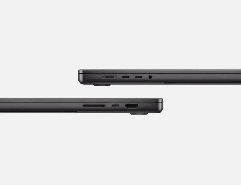 Ports | SDXC card slot, HDMI port, 3.5 mm headphone jack, MagSafe 3 port, Three Thunderbolt 5 (USB-C) ports with support for: Charging DisplayPort Thunderbolt 5 (up to 120 Gbps) USB 4 (up to 120 Gbps) |