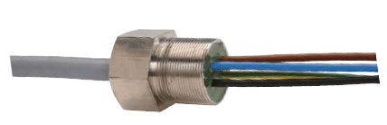 Flameproof Ex d cable entries are elements which allow electrical cables to be introduced into an Ex d enclosure, without danger of explosion. The additional Ex e terminal housing is not required. A main distribution box may by used or the connections can be made outside the Ex-zone. The cable entry consists of a threaded metal sleeve, in which a sheathed cable is anchored and encapsulated. The individual cores are then connected directly inside the flameproof enclosure. The length of cores and cables are customer-tailored. All cables come with standard green-yellow earth leads. The length of engaged thread between the sleeve and the flameproof “d“ enclosure must comply with DIN EN 60079-0 and DIN EN 60079-1.
