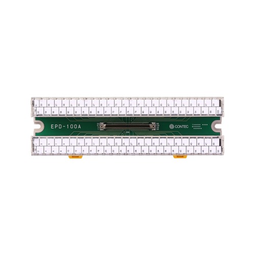 The products is a general purpose terminal fastened with screws, which relays the I/O wirings of CONTEC interface card with a 100-pin 0.8mm-pitch connector. The pins in connector correspond to their respective terminals on the terminal strips on a one-to-one basis, allowing you to easily connect the card to an external device via the terminal strips. A round shape terminal, and a Y form terminal are available together. Note: To connect a card to the accessory, option cable can be purchased separately.