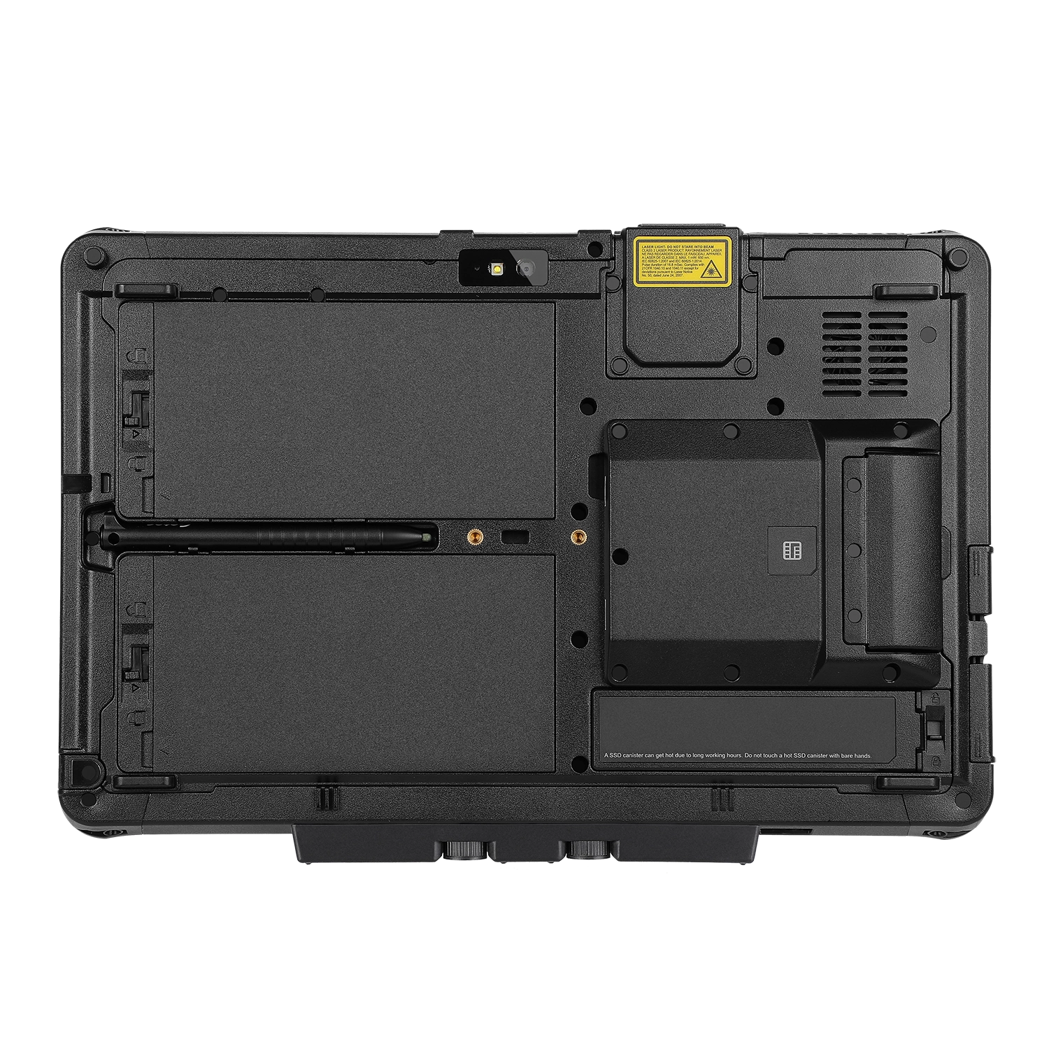 and storage drive covers, enabling easy tool-less removal of the hot-swappable batteries and the SSD for data sharing and security. Added is a new camera privacy shutter, while the expansion slot has been relocated