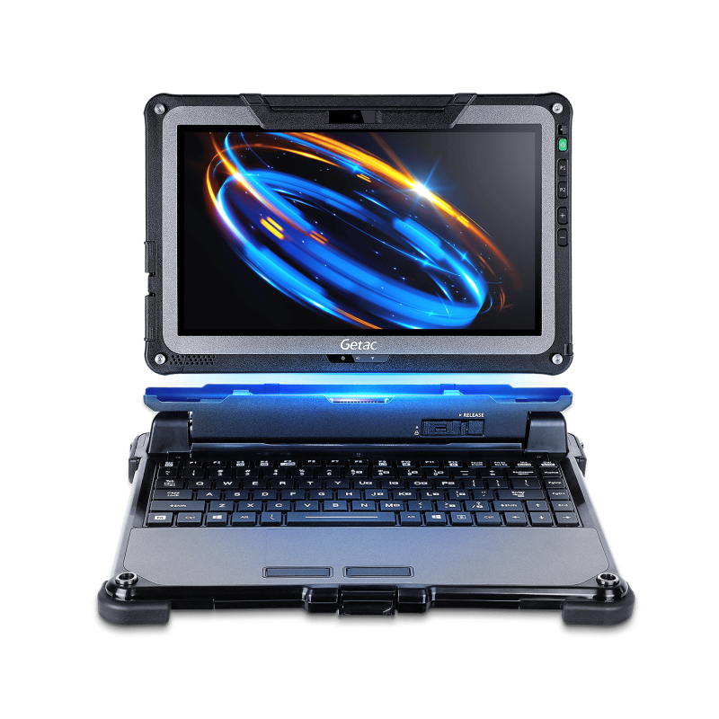 The F110-Ex’s custom accessories, all designed and manufactured by Getac, include an office dock, rotating hand strap with kickstand, and a new detachable keyboard, offering the ease and comfort of typing without compromising ruggedness or mobility. Legacy interface compatibility is also available to those who need it, so you can enjoy the hardware upgrades you need and want without losing anything.