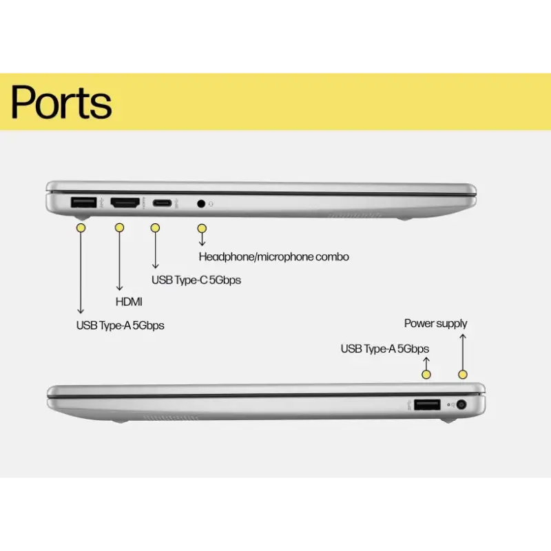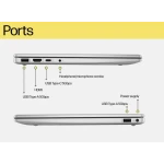A: Includes USB-A, USB-C, HDMI, and a headphone/mic combo jack—suitable for peripherals and presentations.