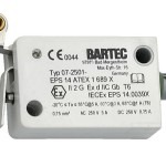 BARTEC miniature switches are used in areas with of limited space for a flameproof switching element. They are especially suitable for applications in valves, thermostats, push switches, servo components, level metres and switching gears. The smallest Ex d miniature switch in the world is encapsulated in a plastic enclosure. The leads or cable tail are potted in at the base. The standard version of the BARTEC miniature switches contains fine silver contacts. Other contact materials such as gold plated silver or solid gold are available for low currents and voltages.Switches with connector cables have been approved by PTB with EC model test certification. The switches can therefore be mounted at any time into devices and systems which offer mechanical protection – no further testing is required. The connector cable is cast into the back of the switch. The wires are colour-coded. The (standard) cable length is 3 m; other lengths are available on request.