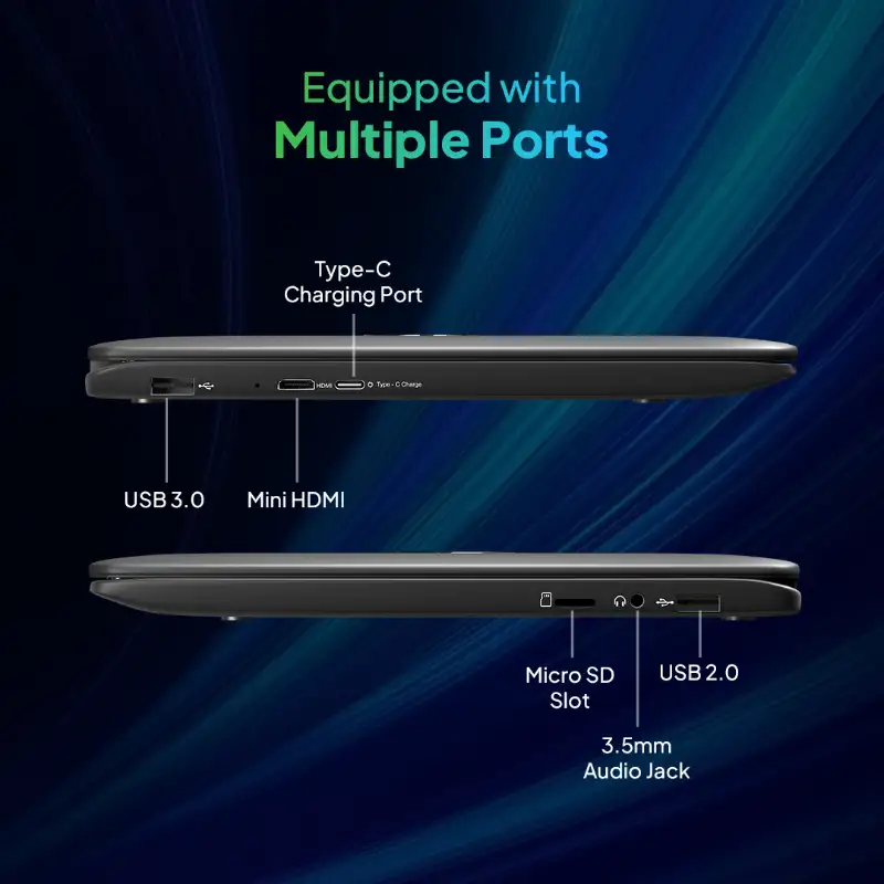 Model Name | Primebook WIFI | Ports | USB 3.0 x1 + USB 2.0 x1, 1 3.5mm Audio Jack, x1 Mini HDMI, 1 MicroSD, Support Up to 512GB, x1 Type-c charging port 12V/2.5 A <30W |