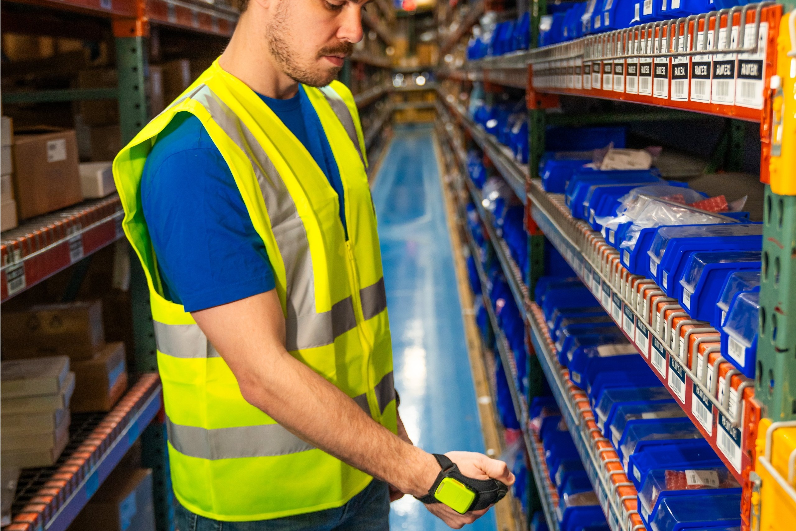 Give your workers an instant productivity boost with the RS2100 Wearable Scanner — the smallest enterprise wearable scanner on the market. Your workers will want to wear the RS2100, thanks to its innovative back of hand design that delivers a new level of comfort and dexterity. The unique mount leaves the palm entirely unobstructed, providing complete freedom to handle items. The very low profile enables easy picking in tight spaces. And there’s nothing complicated about this wearable scanner: it’s simple to purchase, deploy, wear and manage.